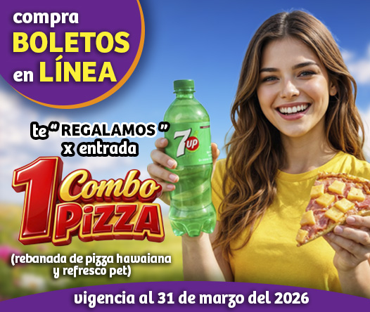 - Su compra no aplica con otras promociones. No está permitida la entrada con alimentos, bebidas, ni mascotas.
